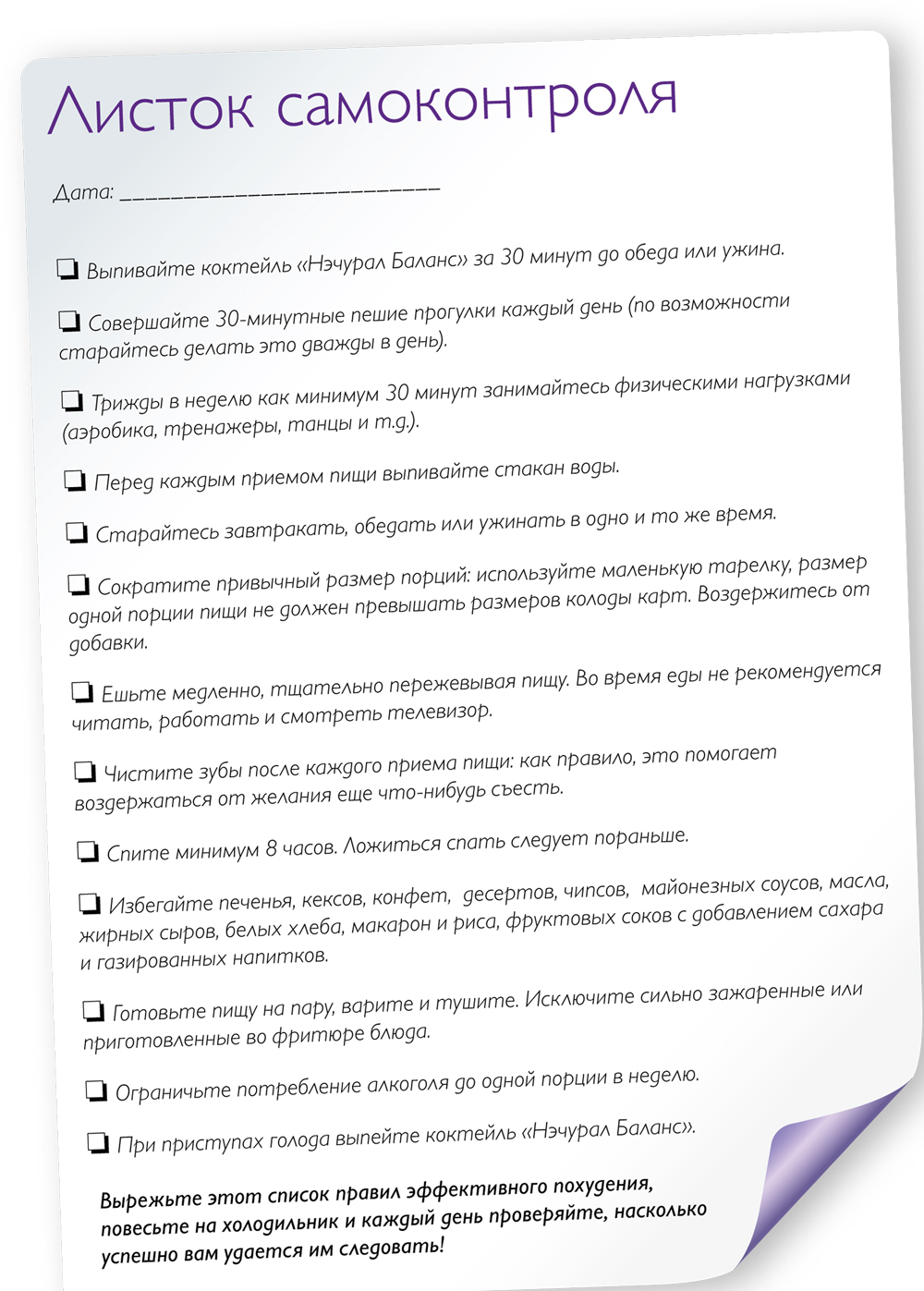 Вырежьте этот список правил эффективного похудения, повесьте на холодильник и каждый день проверяйте, насколько успешно вам удается им следовать!